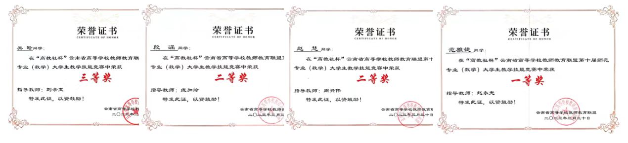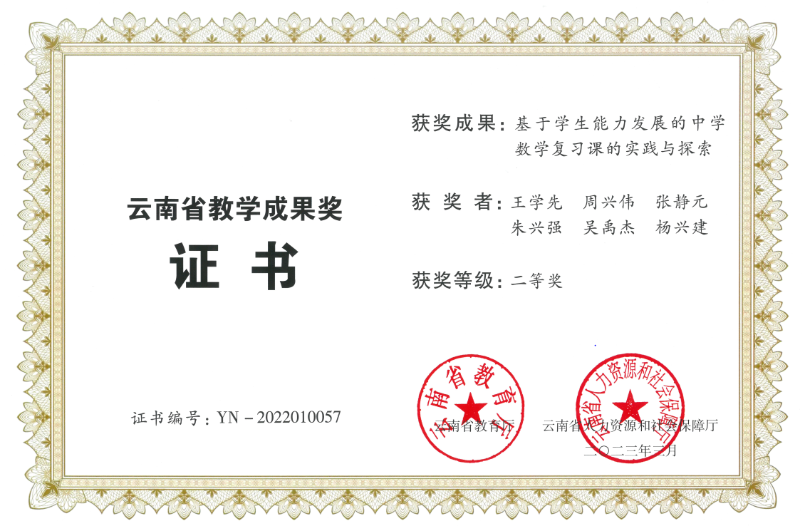 2022年,开展校校合作,与云南省教学名师王学先名师工作室开展合作,对中学数学教学及团队培养开展研究。2023年3月获云南省基础公司产品成果奖1项。