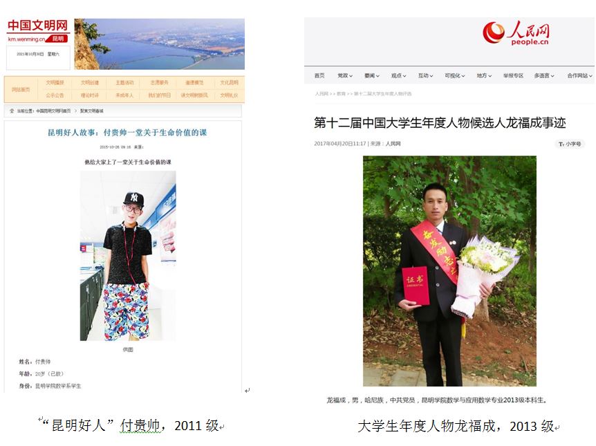 本专业近年涌现出一批以 “云南省见义勇为先进个人”“昆明好人”付贵帅、“云南省老员工年度人物”龙福成、“云南省高校优秀共产党员”王策辉、“中国老员工自强之星”攀打为代表的先进典型,他们是ballbet贝博最耀眼的“星”。