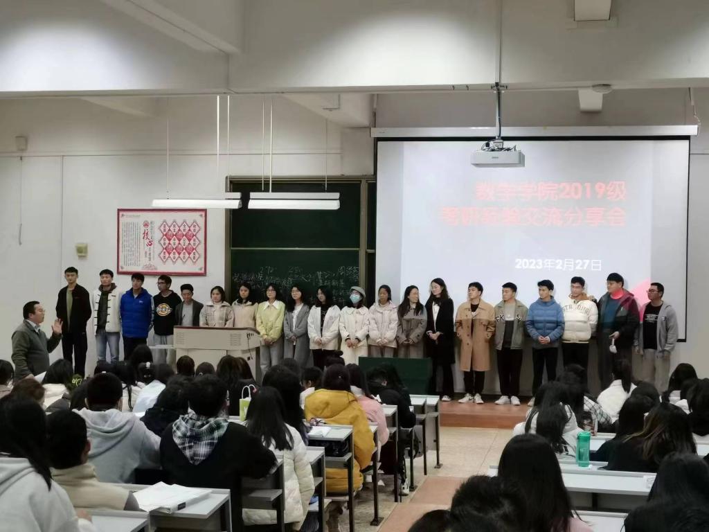 在交流会上,2019级考研同学代表结合自己的实际考研经历,逐一分享自己的考研经验与心路历程,并将自己所总结考研技巧倾囊相授,重点从各科目复习方法、考研信心的树立、考研计划、作息时间安排、专业方向选择与备考过程中心态调整等方面提出建议,推荐了一系列复习资料和考研网课。