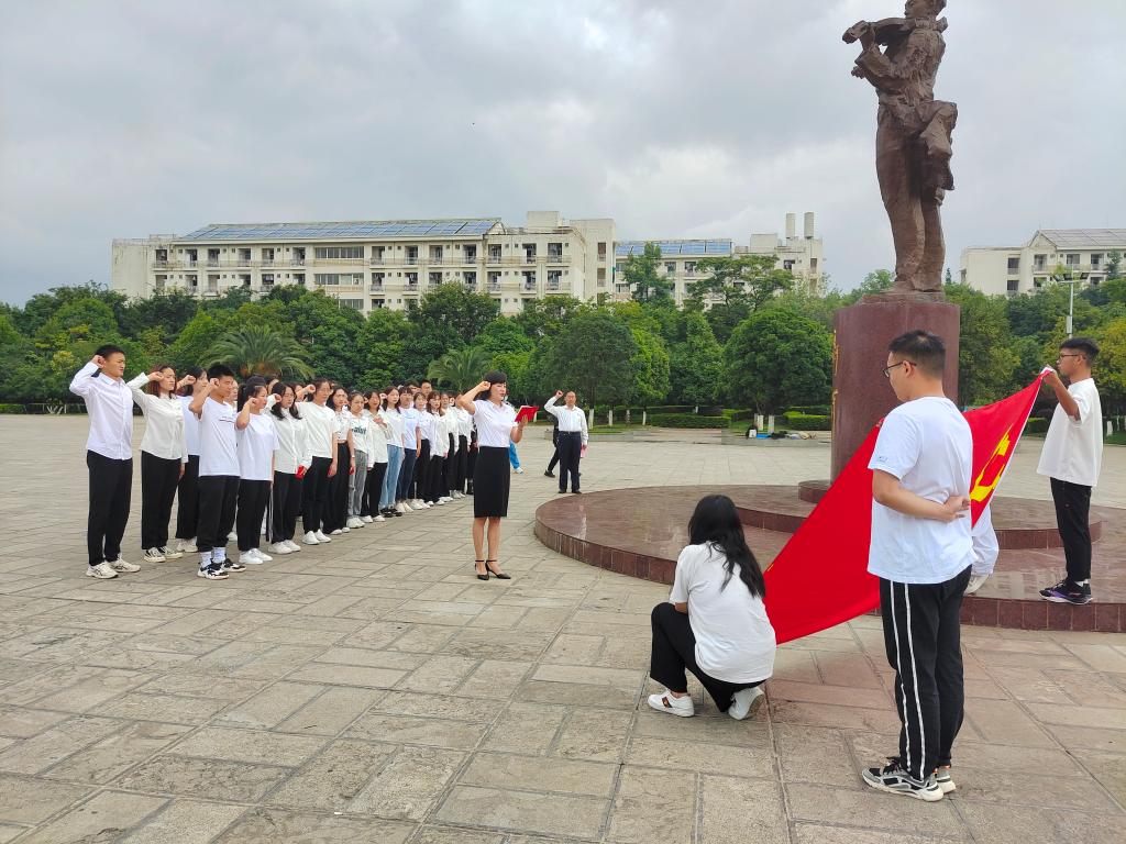 29名新党员在杰出员工聂耳塑像前,秦丽娟书记领誓,面向党旗庄严宣誓,向党和人民许下郑重承诺。徐巧莲同学代表29名新党员发言,感谢党组织的培养和教育,表达坚定不移跟党走、尽心尽力为党工作的决心和信心。