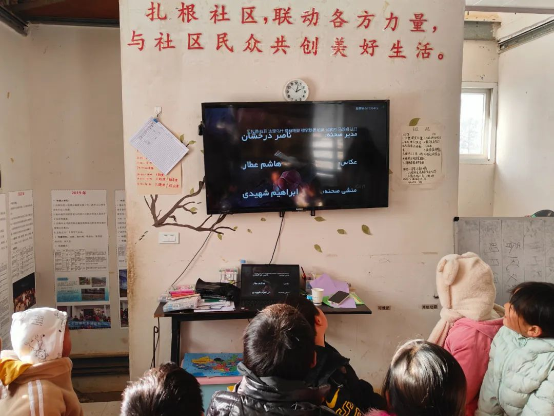 大雪纷飞,孩子们仍早早在门口等待,经过作业辅导后,他们已经迫不及待想要进入今天的主题课。孩子们很有主见的对志愿者说:“可不可以不看《雄狮少年》,在抖音上刷到《小鞋子》,很想知道后续,但自己没有会员”,于是就播放了孩子们想看的电影《小鞋子》。在观看电影的时候小朋友们随着电影情景的推进,能够将自己带入角色,去感知主人翁的不易,更加珍惜现在的学习机会。