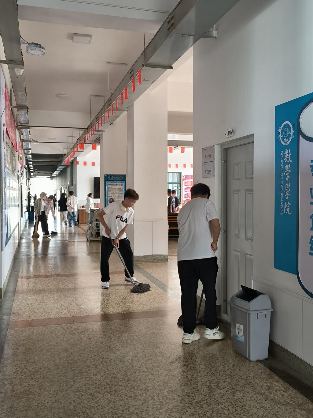 图为同学们打扫过程