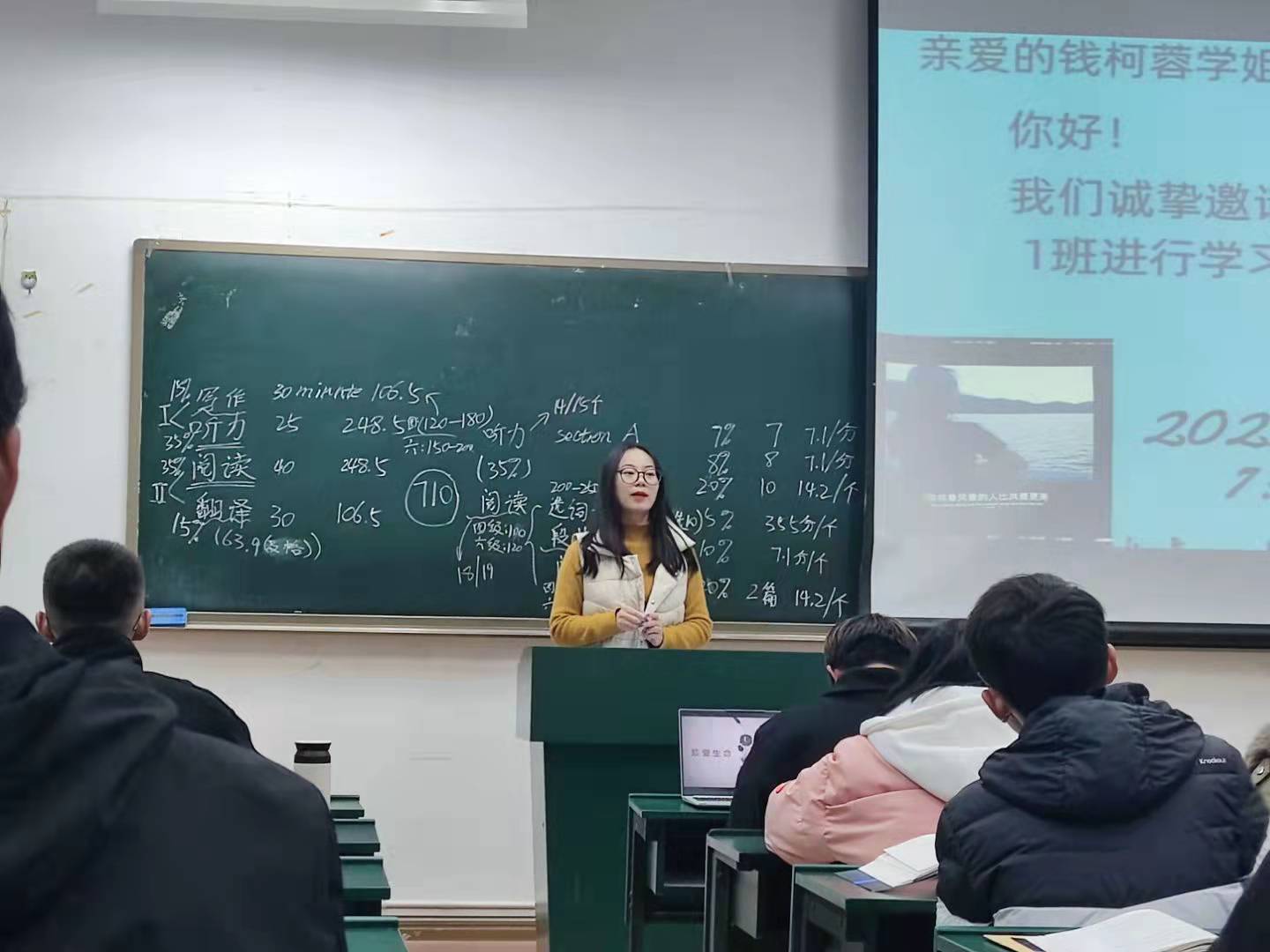 钱柯蓉首先介绍了大学英语四六级相关题型以及各个题型的对应分值;随后,针对每一种题型的应对方法也进行了讲解,指导同学们如何在有限的时间里提高记忆力和学习效率;最后她分享了真题,为首次参加大学四六级考试的同学们加油鼓劲。