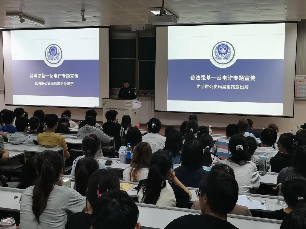 昆明市公安局昌宏路派出所符警官通报了今年接到辖区ballbet贝博martini内相关警情,提醒同学们一定谨防上当受骗,并结合4.15全民国家安全知识宣传日宣传国家安全知识。