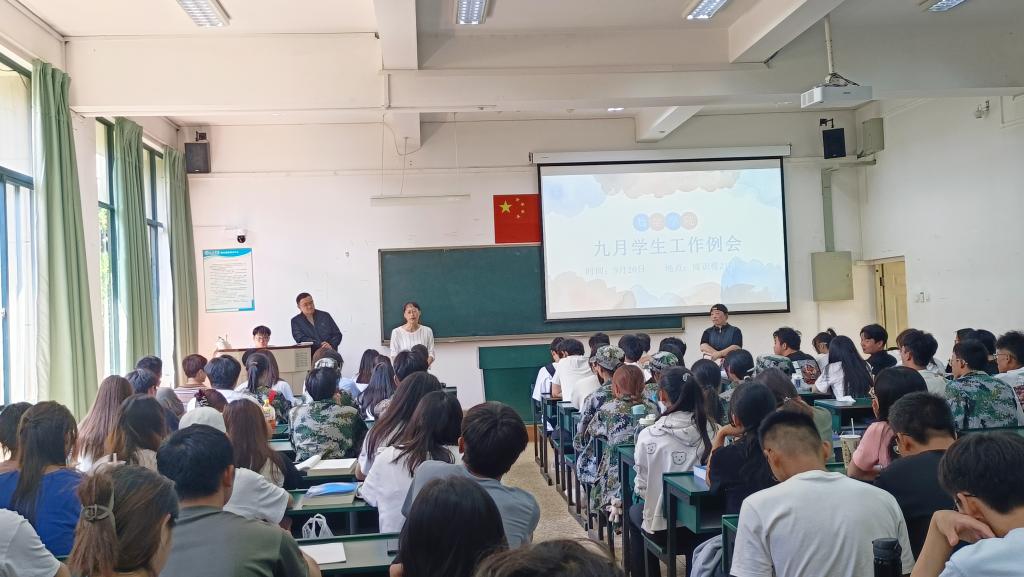 施菲老师首先强调班级日常管理和安全问题,尤其是防电诈、交通安全、人身财产安全、消防安全、宿舍用电安全等,对创文工作应知应会和文明礼仪进行再强调,对接下来评奖评助工作进行说明,对中秋国庆放假的安全、去向落实和查寝提出要求,要求各班务必严格按照公司和公司要求开展落实工作。尹利方老师对班委执行力提出进一步要求,要求各班必须不折不扣完成工作任务,保证各项工作落实到位。余晓丽老师对火车票优惠卡办理充次进行说明。盛枝泉老师对2024届毕业生就业工作和近期公司招聘会进行宣传动员,要求毕业班按公司2024届毕业生就业工作启动会上安排积极准备,尽快实现就业,完成就业相关工作。