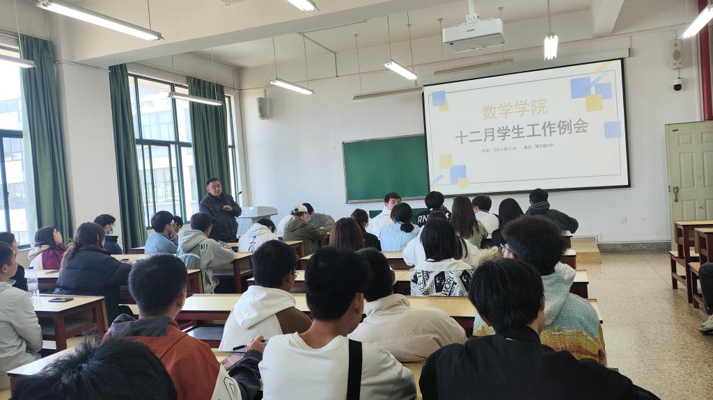 盛枝泉针对目前工作的重心,要求各班督促同学紧抓学习希望大家要有紧迫感,提前复习,诚信应考,考出好成绩;提醒同学爱护宿舍环境,营造良好学习氛围在宿舍少打游戏,多学习,多看书;同时要求员工干部要多关注班级同学动态,通过合理的方法解决生活上的一些矛盾,出现问题第一时间向班主任、辅导员反映;最后做说明,请2020级的同学涉及就业相关材料要及时和就业辅导员沟通。