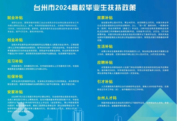 台州作为江浙发达地区,就业岗位的待遇、优惠政策和发展前景都有一定优势,请各位同学提前对感兴趣的企业进行了解,完善简历,做好应聘准备,7日按时参加专场招聘会。