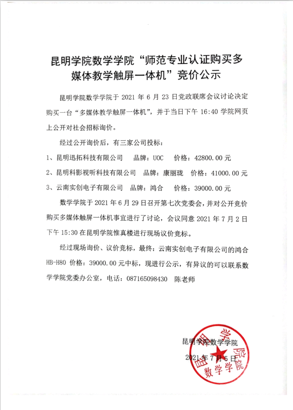 ballbet贝博“师范专业认证购买多媒体教学触屏一体机”竞价公示