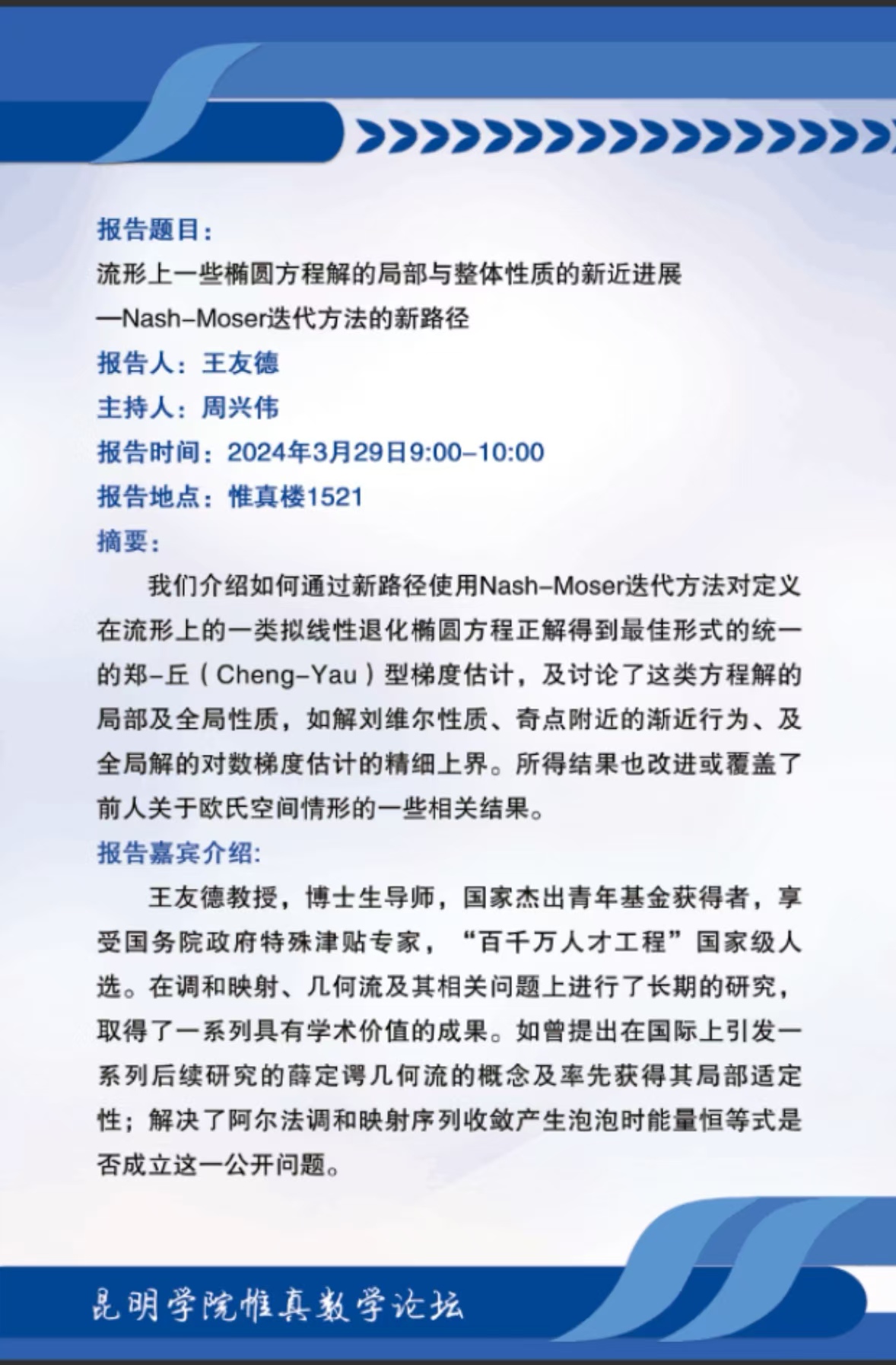 ballbet贝博martini惟真数学论坛-王友德教授