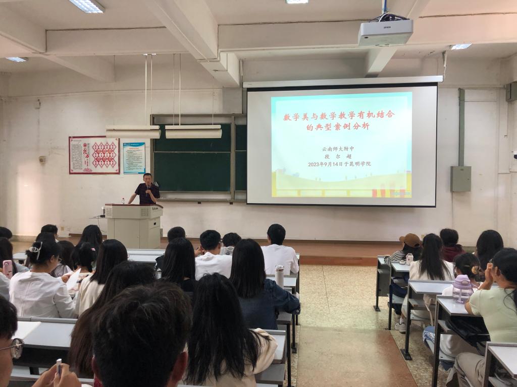 2023年9月14日下午,应ballbet贝博邀请,云南师大附中数学教研组长段尔超老师到校为ballbet贝博师范生作题为“数学美与数学教学有机结合的典型案例研究”的讲座。段尔超老师是中学数学正高级教师,在中学数学教学岗位上辛勤耕耘三十七载,桃李满天下,段尔超老师在教学研究方面取得了斐然成果。