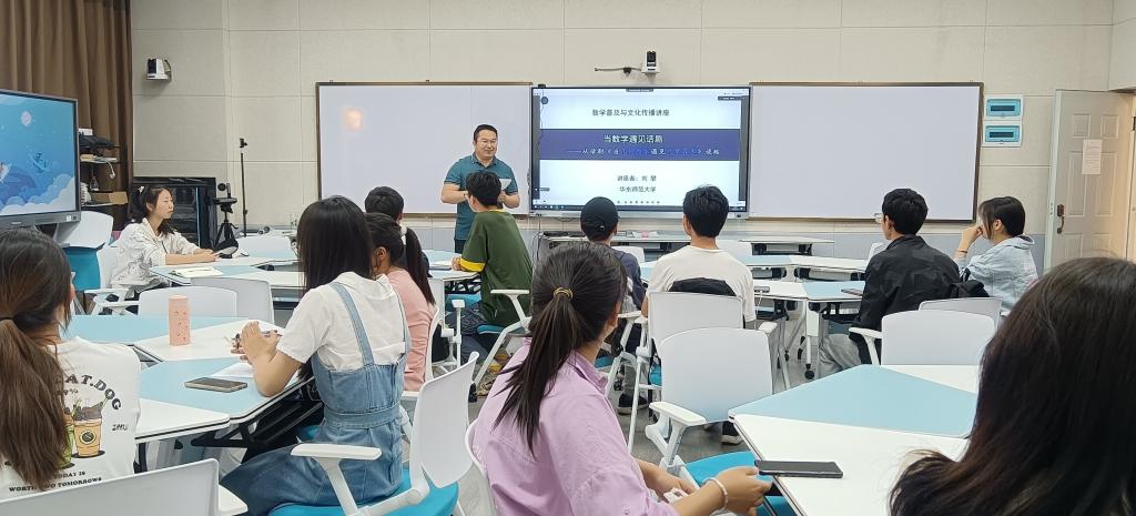 刘攀老师系统回顾了华东师范大学数学话剧的发展历程,从2012年的“无以复伽”到2022年的“当几何原本遇见九章算术”,华东师范大学的数学话剧从最初的稚嫩,走到了成熟,从当初的自娱自乐,到今天的广泛关注。刘攀老师还对“竹里馆”与“数学中国”两个系列进行了介绍,以“当几何原本遇见九章算术”为例,详细为师生解读了数学话剧的创作与实践,第二幕第一场对“三角形内角和为180度”的探讨,展现了对《几何原本》这一封闭演绎体系的精细刻画;第七幕第一场,以朗诵的形式,通过大量中西方富于人类性灵产物的作品,展现了话剧这一形式的宽广。刘攀老师还介绍了这一话剧创作和表演中台前幕后的一些趣事,并分享了同学们在参与的过程中的收获和感悟,勉励ballbet贝博学子,迈出实践的第一步,用自己的智慧来演绎数学上一幕幕精彩的大戏。