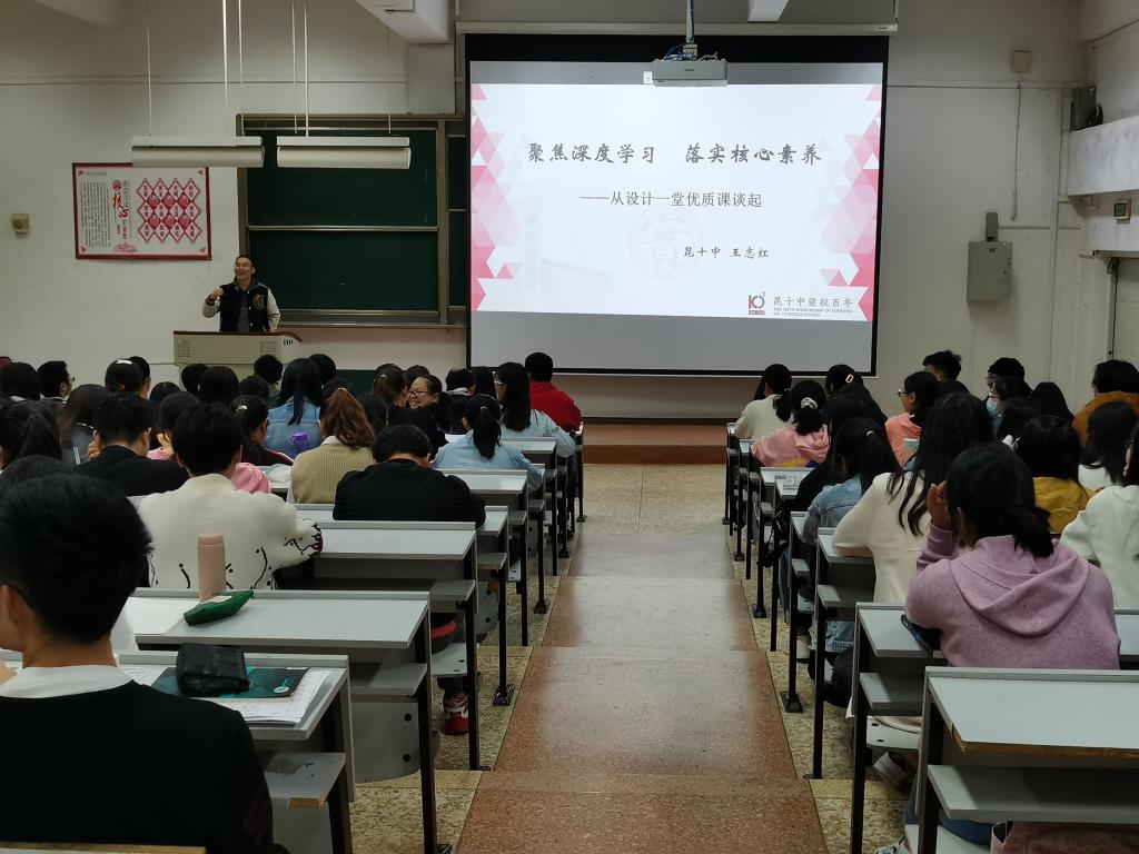 2021年11月4日,在博识楼2001多媒体阶梯教室,ballbet贝博邀请昆明市名班主任、昆明市教坛新秀、盘龙区数学学科带头人昆明市第十中学高中数学教师王志红老师开展题为“聚焦深度学习、落实核心素养-从设计一堂优质课谈起”的讲座,数
