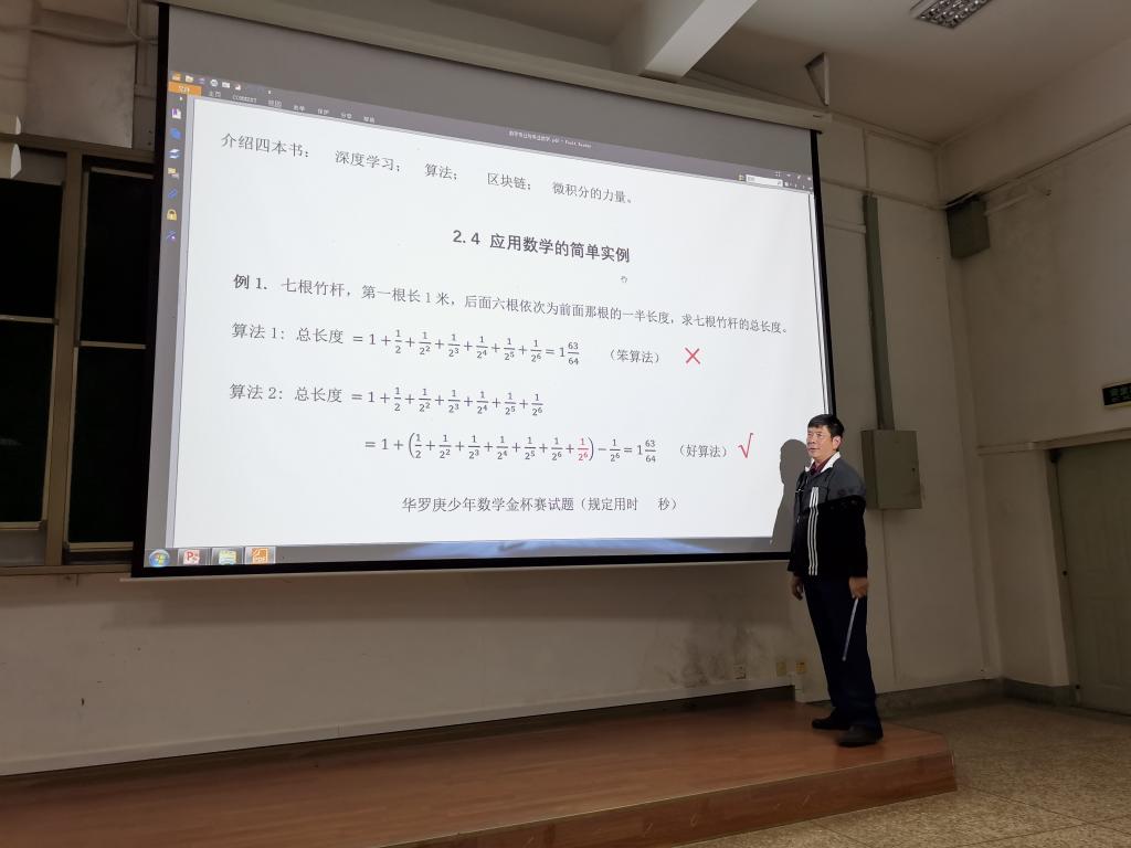 专业及其地位进行了深入浅出的分析。然后对专业数学的组成,从内核与外延进行了剖析,系统介绍了数学内核的发展动力、发展原则和发展方向。徐教授在讨论中使用了大量生动有趣,简单而又富于启发性的问题,通过对这些问题的讨论延伸到社会的热点问题。最后徐教授寄语员工:在四年的本科学习过程中,要严格训练数学思维,初步掌握数学思想⽅法,以及⼀定的数学语⾔表达能⼒。四年后,要作为一个具有严密的逻辑思维,具有宽厚的人文情怀的数学专业的毕业生,自信地走向社会。