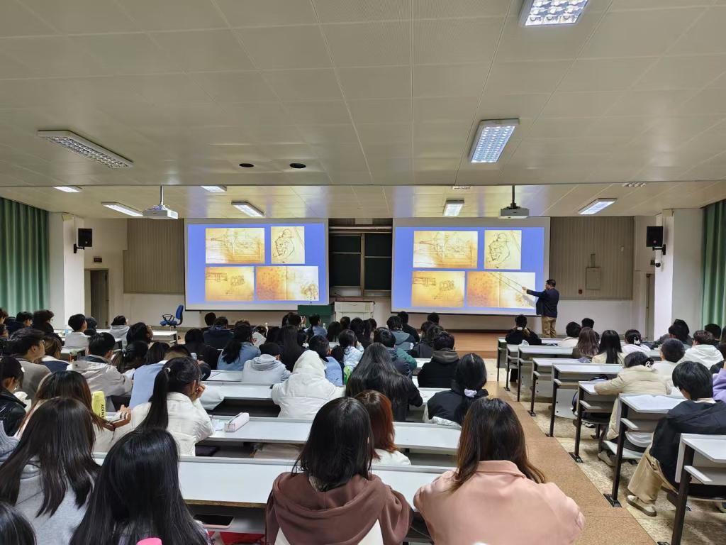 代教授从达·芬奇的生平,手稿、笔记和藏书,数学定义及其历史渊源,求面积及思想内涵,数学证明及启迪作用,立体图形的制作和数学应用七个方面分享达·芬奇的探索、求知过程,以及他在数学领域所做的贡献。